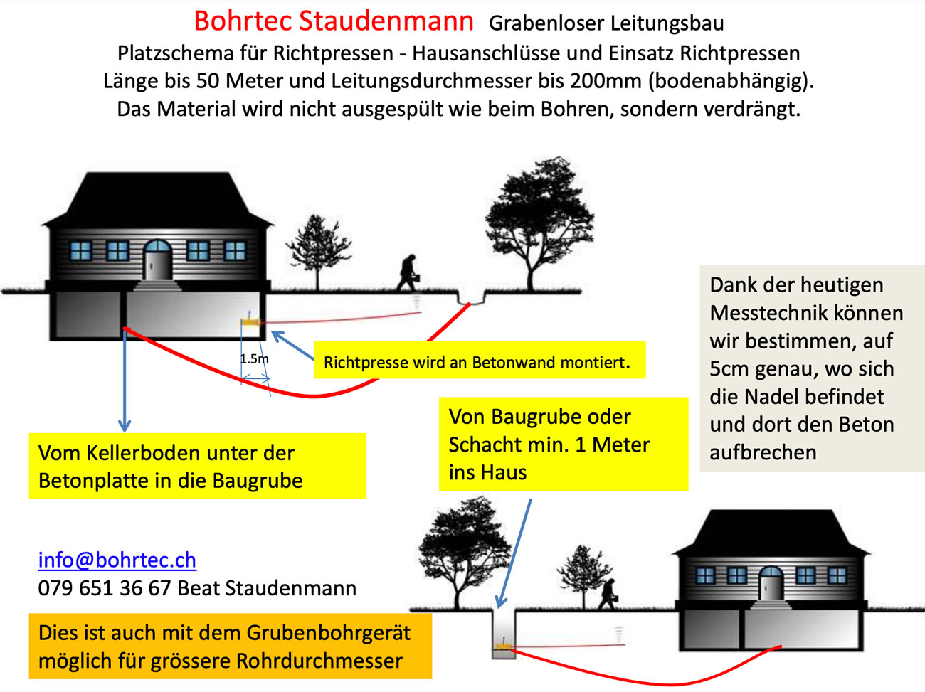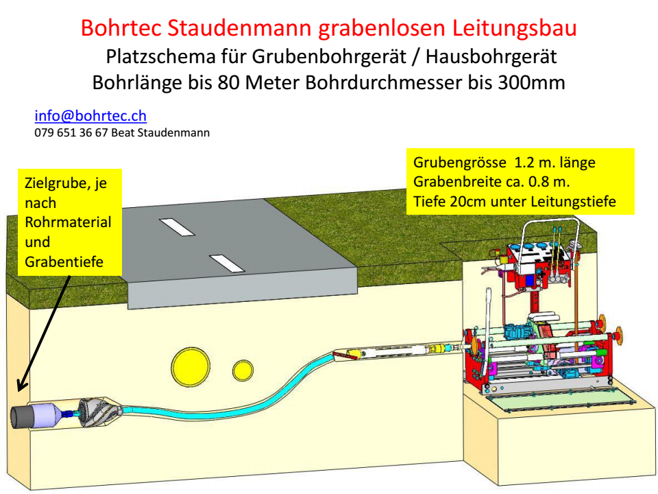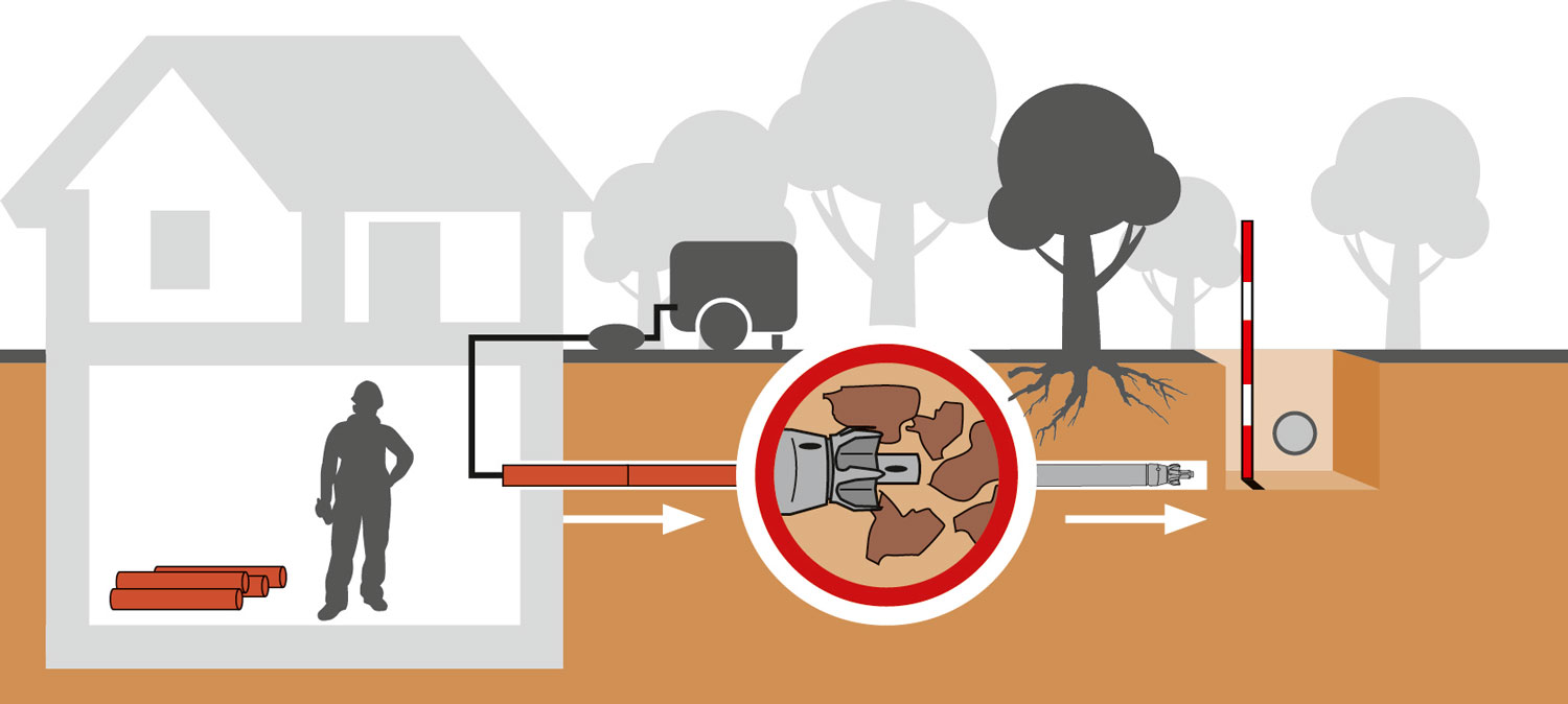 Kostengünstiges Verfahren für Leitungen mit max. 1.2m Tiefe und einem Durchmesser von max. 160mm.